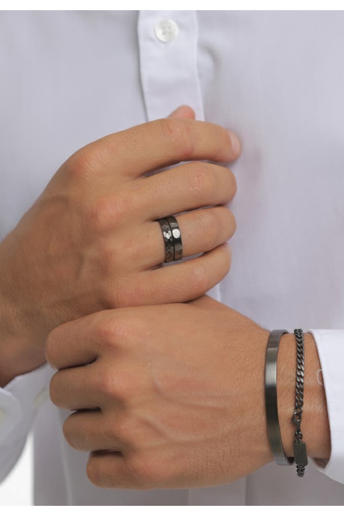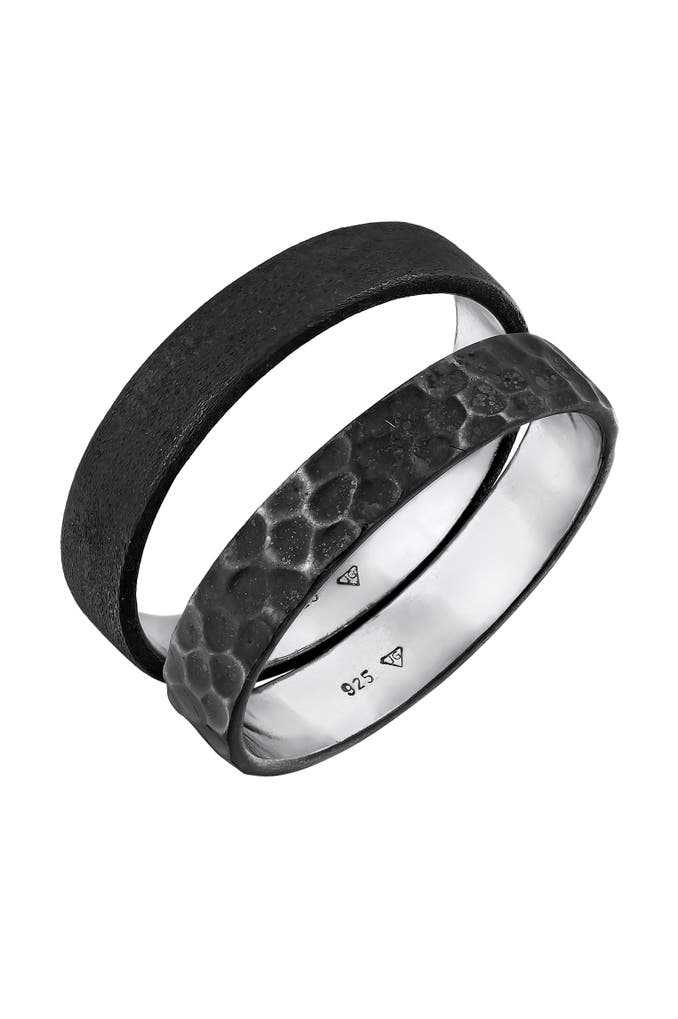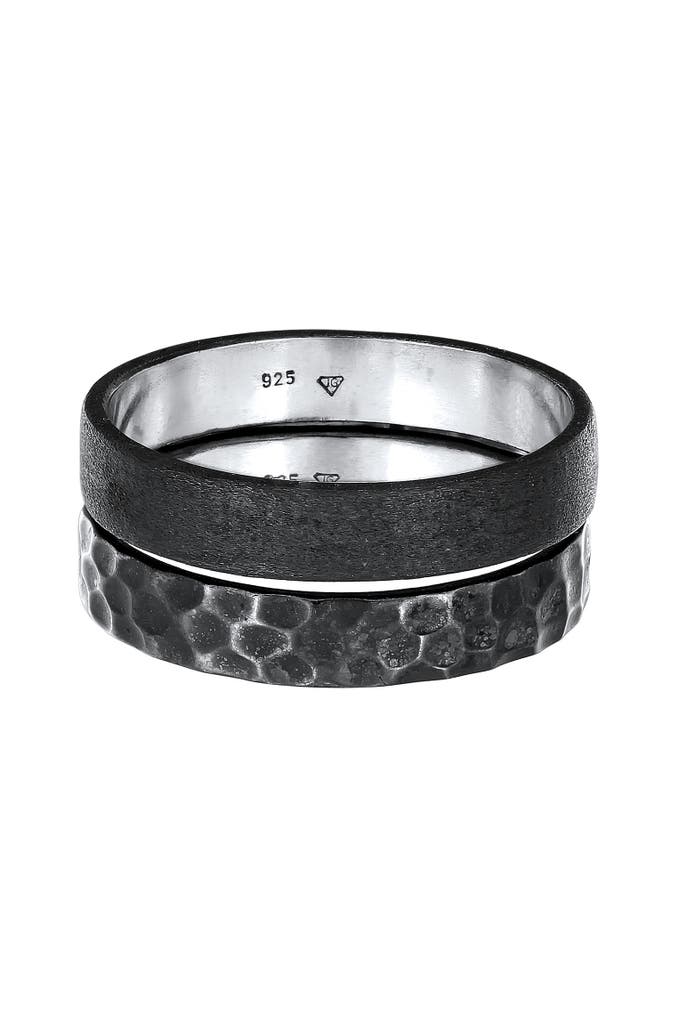 KUZZOIRing Kuzzoi Ring Set Basic Gehämmert 925 Silber Schwarz