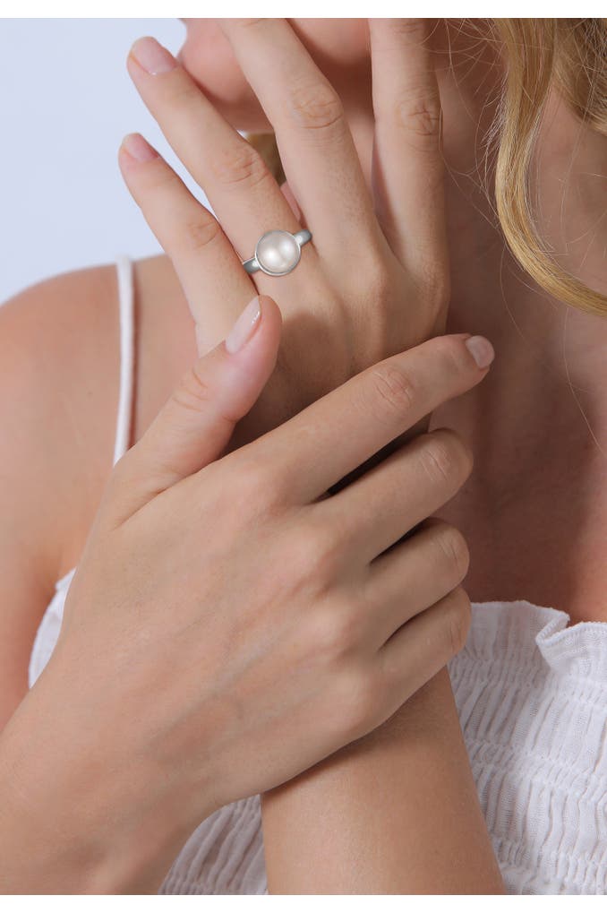 Dieser zeitlose Silberring wurde aus feinstem 925er Sterling Silber handgefertigt und mit einer glänzenden Süßwasserzuchtperle verziert. Durch das elegante Design ist dieser feminine Fingerschmuck ein klassisches Must-Have für jede modebewusste Frau und ein Statement für die Ewigkeit.