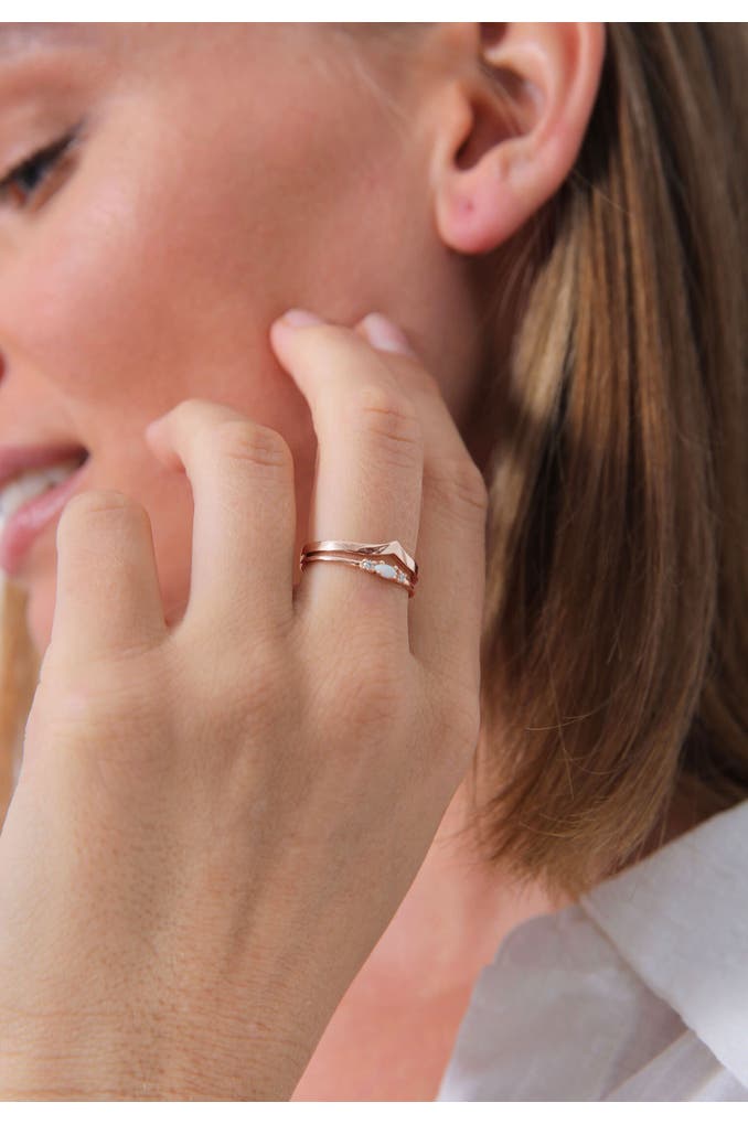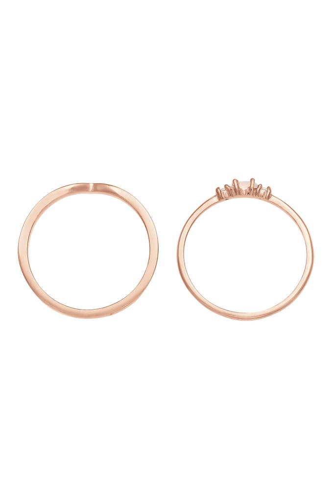 Dieses extravagante Ring-Set präsentiert sich im angesagten Vintage Design. Ein filigraner Ring, wird geziert von einem fein schimmernden synthetischen Opal in Kombination mit funkelnden Zirkonia Kristallen. Das romantische Gesamtbild wird von einem V-Ring im schlichten Look hervorgehoben. Für alle Frauen die zeitlose Eleganz lieben, ist dieses Set ein perfektes Accessoire für jeden Anlass.