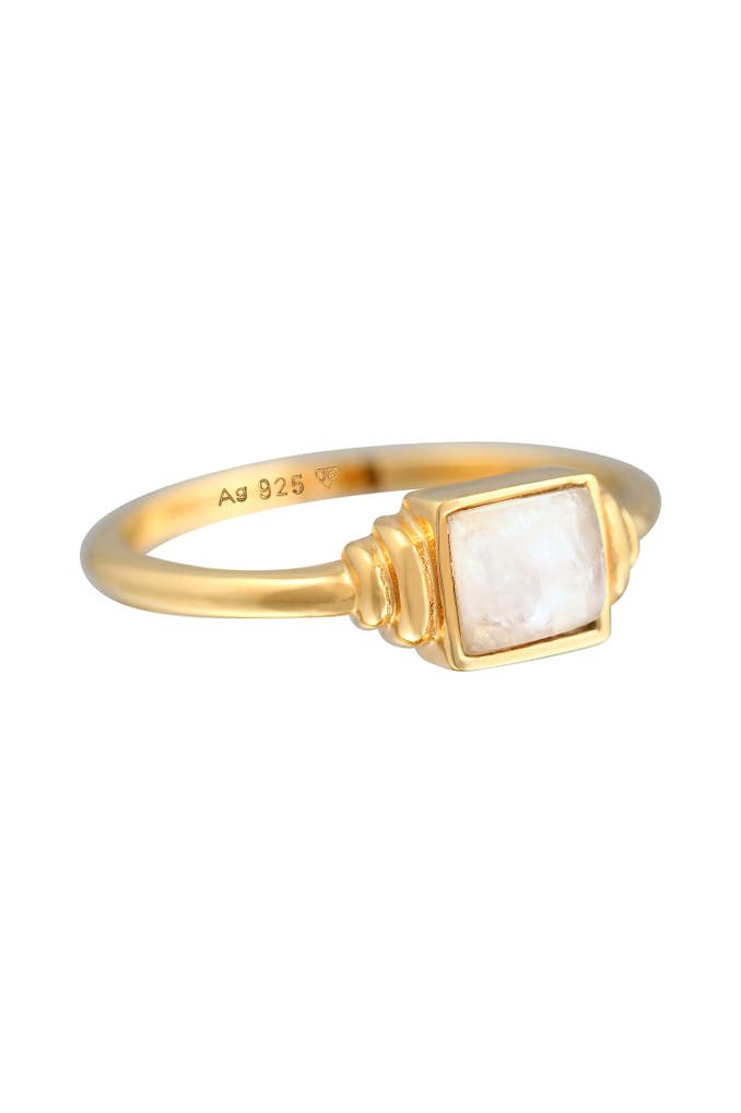 Dieser klassische Damenring glänzt im angesagten Vintage-Design. Der kunstvoll gestaltete Ringkopf mit blau-grünem Mondstein im quadratischen Cabochon-Schliff macht diesen Ring besonders. Durch die klare Steinfassung kann dieses Schmuckstück seine ganze Schönheit entfalten. Ein wunderschönes Accessoire im modischen und doch antiken Stil für Frauen die Fashion lieben.