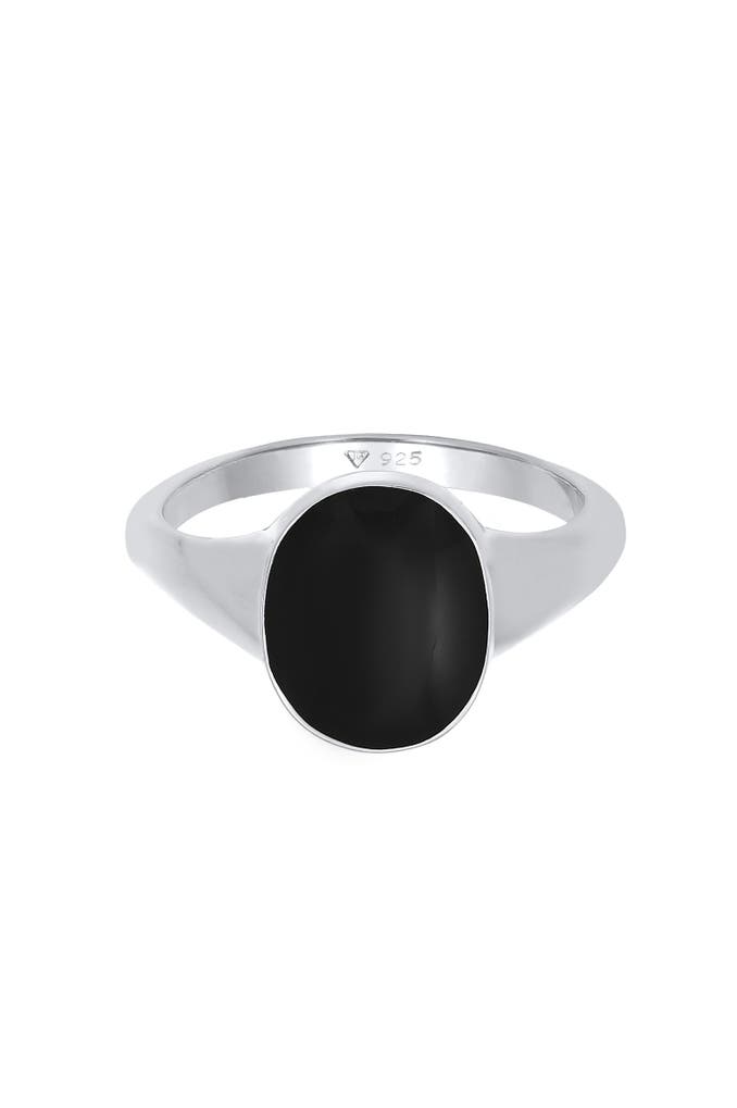 ELLIRing Siegelring Emaille Oval 925 Silber Schwarz