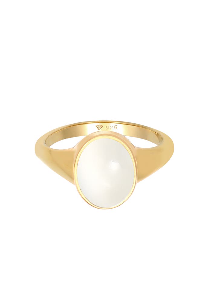 ELLIRing Siegelring Mondstein Oval 925 Silber Gold