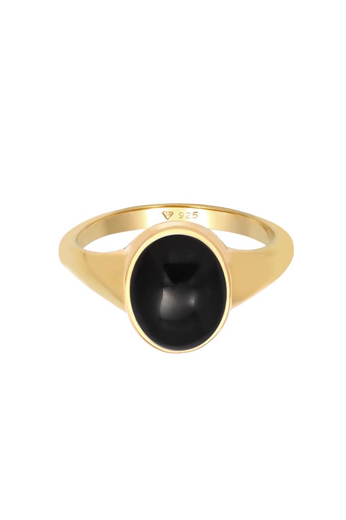 ELLIRing Siegelring Onyx Oval 925 Silber vergoldet Gold