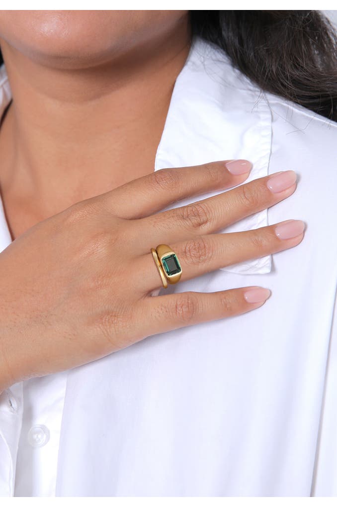 Dieser klassische Siegelring strahlt im edlen Glanz. Der grüne Quarz Edelstein im Smaragdschliff vervollständigt jedes Outfit. Als wunderschöne Kombination ergänzt ein Bandring im gedrehten Look dieses wunderschöne Set. Das modisch, schlichte Design beider Damenringe sieht wunderschön aus. Ob alleine getragen oder als Ring Set mit weiteren Schmuckstücken zum einzigartigen Style kombiniert. Sie entscheiden ob lässig oder luxuriös, ein Blickfang ist garantiert.