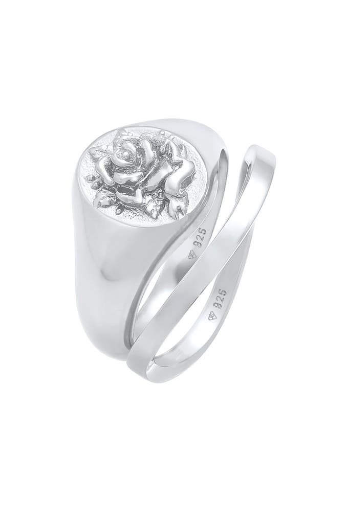ELLIRing Siegelring Rose Basic Ring 2er Set 925 Silber Silber
