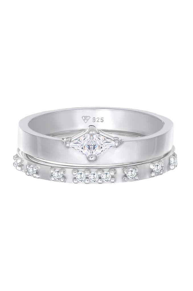 ELLIRing Solitär Eternity Zirkonia Verlobung Set 925 Silber Silber