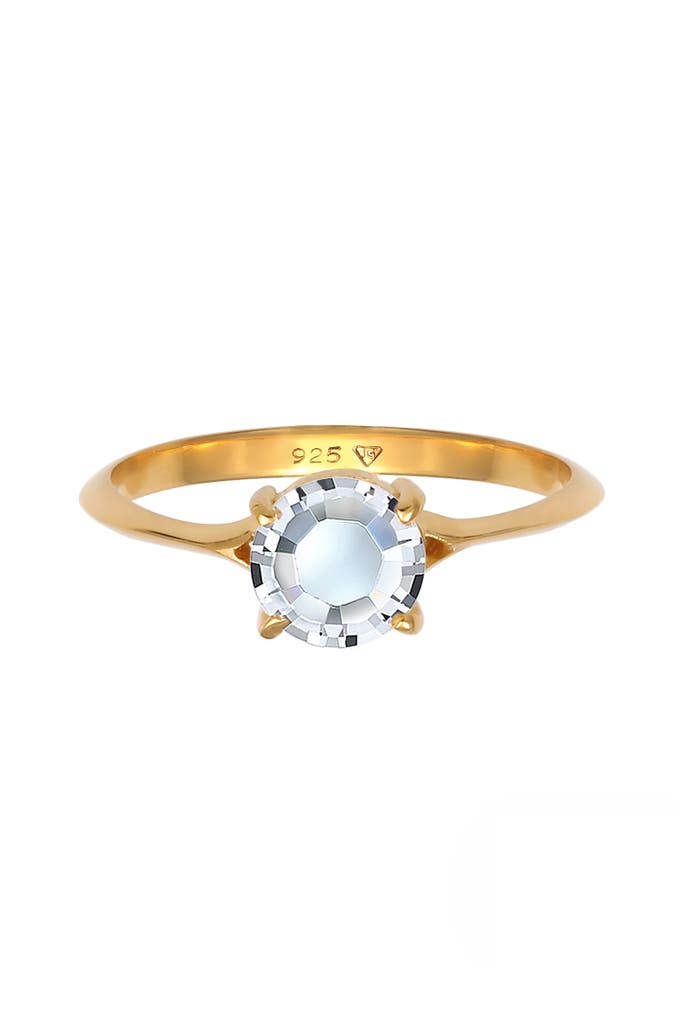 ELLIRing Solitär Rund Verlobung Kristalle 925 Sterling Silber Gold