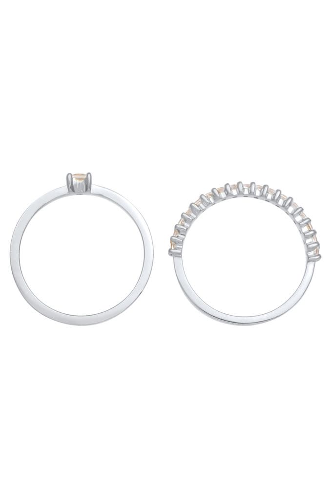 ELLIRing Solitär Zirkonia Stapelring (Set 2-tlg) 925 Silber Silber