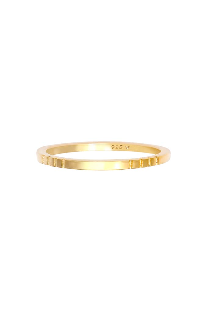 Dieser modische schmale Bandring ist das perfekte Accessoire für den angesagten Stabellook. Die zarte Ringschiene ist an der Oberfläche eingekerbt und sorgt so für einen ganz besonderen Style. Tragen Sie diesen wunderschönen Ring allein in Kombination mit anderen Ringen oder am Mittel- oder Zeigefinger.