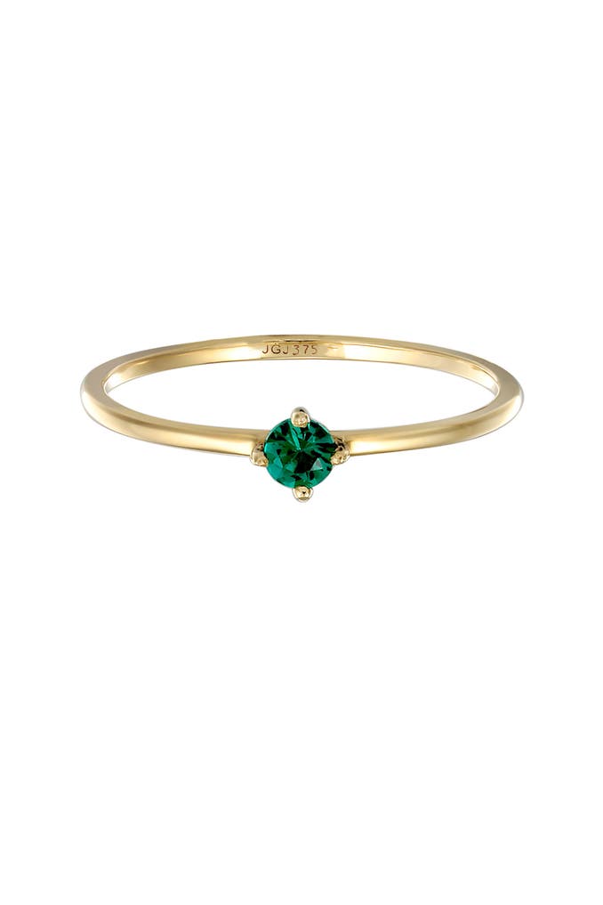 ELLI PREMIUMRing Synthetischer Smaragd Solitär 375er Gelbgold Gold