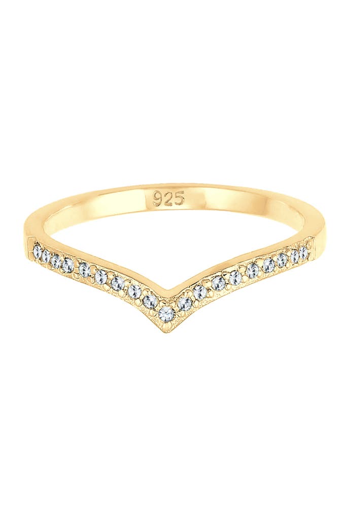 ELLIRing V-Form Glas Kristalle Weiß 925 Sterling Silber Gold