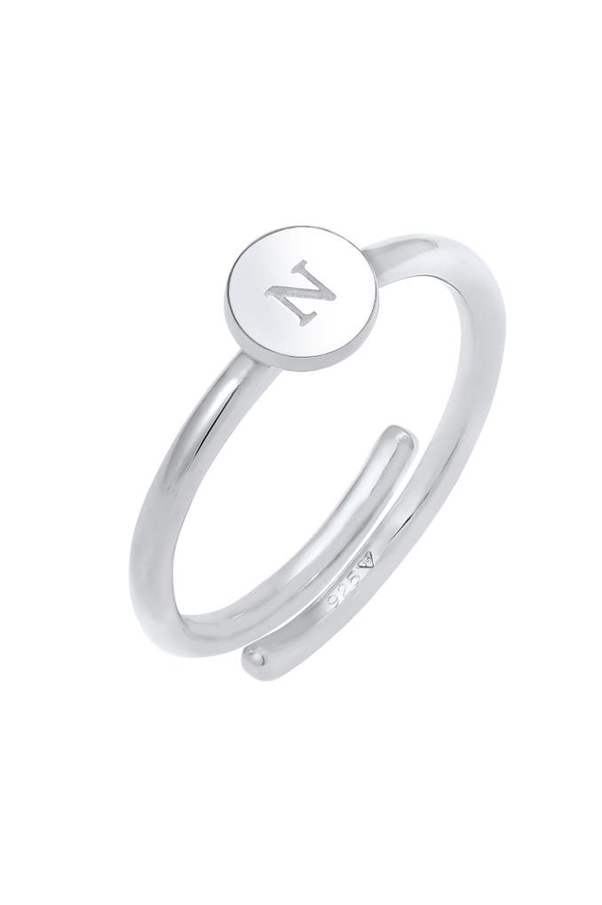 ELLIRing Verstellbar Initiale Kreis 925 Sterling Silber Silber