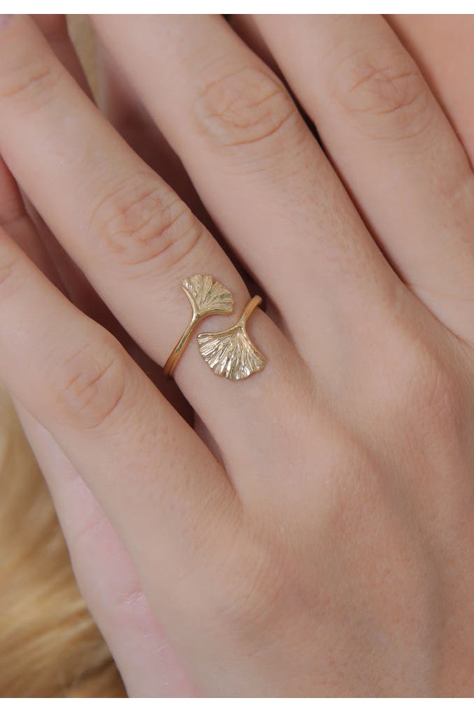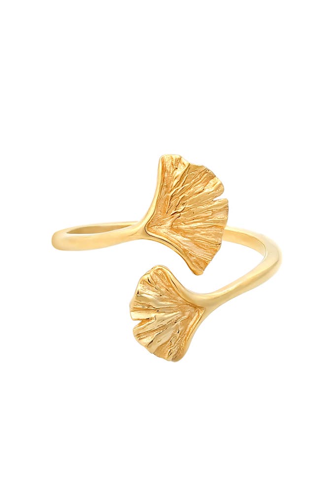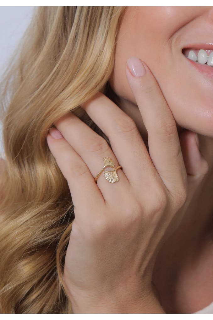 ELLIRing Verstellbar offen Ginkgo Blatt Natur 925 Silber Gold