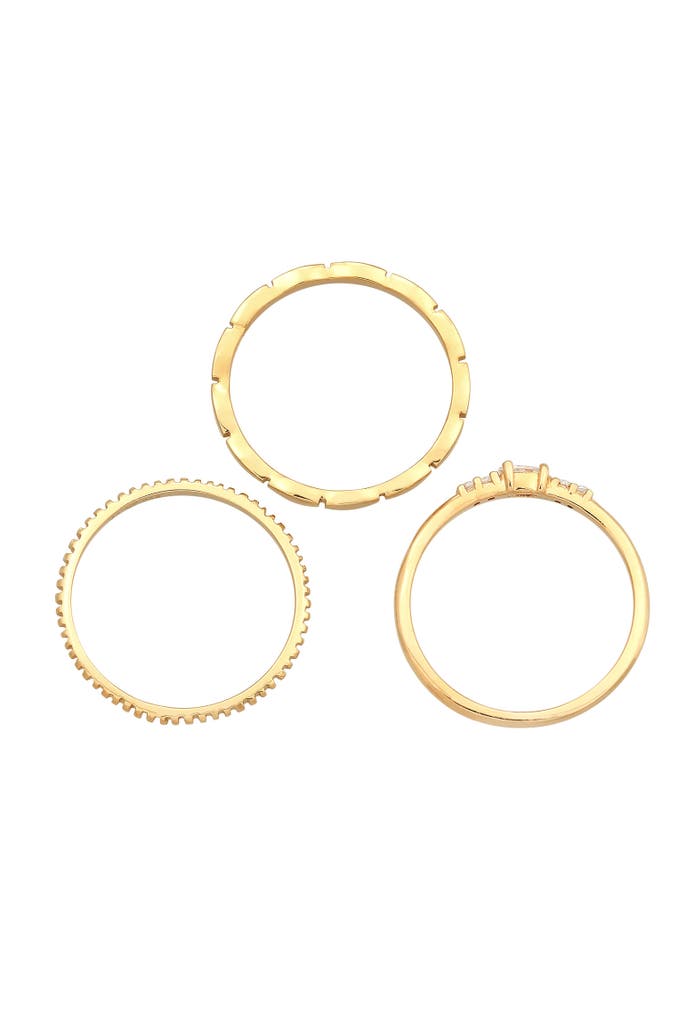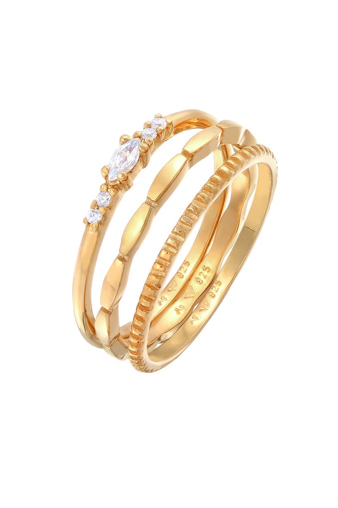 Dieses strahlende Ring-Set, rundet jedes Outfit ab. Die filigrane Optik und das elegante Design dieser Stapelringe eignen, sich für jeden Anlass. Das Set besteht aus einem zarten Damenring mit facettenreichen Zirkonia Besatz. Für den dezenten Touch sorgen die beiden geometrisch und strukturierten Basic-Stapelring, die je nach Lust und Laune zum Kombinieren einladen. Ein hinreißendes Accessoire das jedem Outfit das richtige Maß an Glamour verleiht.