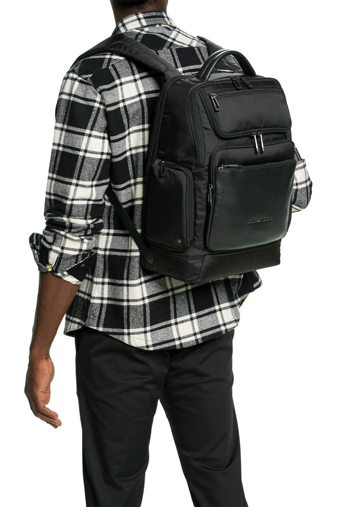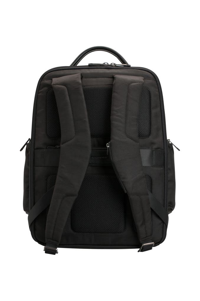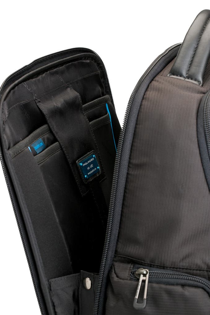 Mit diesem Rucksack präsentiert Piquadro ein echtes Platzwunder: In den zahlreichen Fächern finden große und kleine Gegenstände ihren festen Platz und sind damit, sowie durch die großen Taschenöffnungen immer schnell griffbereit.