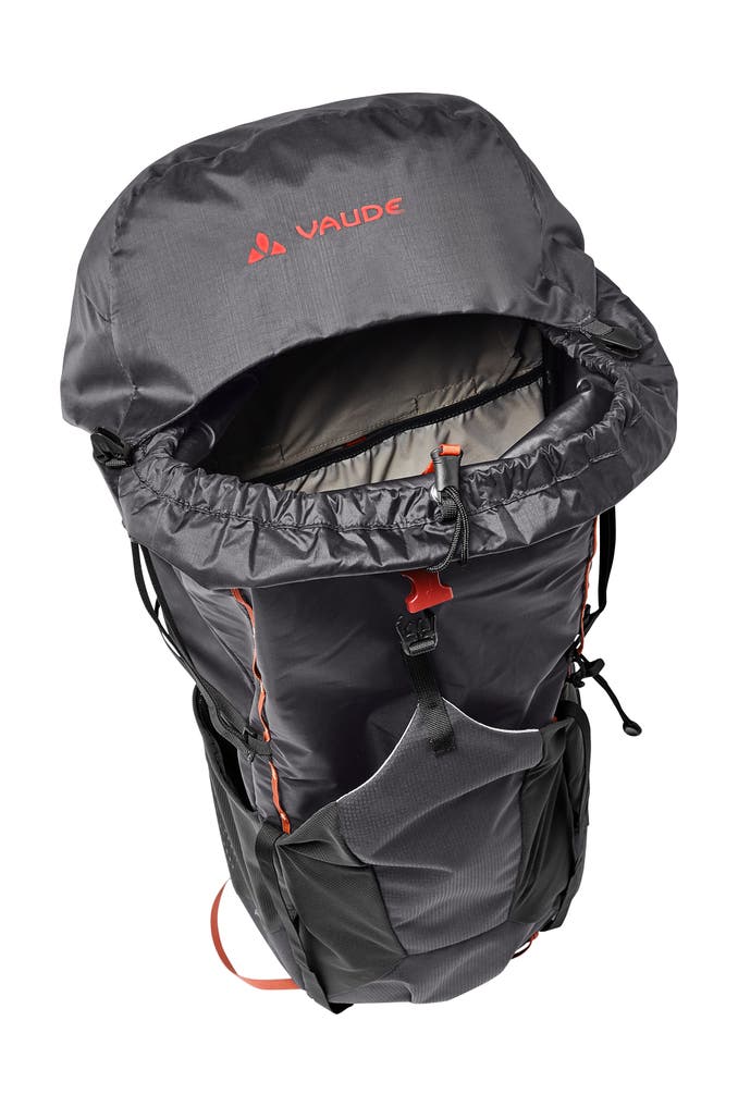 Wenn beim Trekking jedes Gramm zählt: Der Lightweight-Trekkingrucksack bietet hohen Tragekomfort bei niedrigem Gewicht – ideal für schnelle Wanderungen und zum Pilgern. Der ultraleichte Trekkingrucksack ist rückenfreundlich gepolstert: Die Aussparung am unteren Rücken mindert den Druck auf das Iliosakralgelenk und beugt Rückenschmerzen vor. Das Tergolight Comfort Space-Tragesystem verteilt die Last optimal. Rückenlänge sowie Lastenpositionierung sind individuell einstellbar. Die luftigen Ergoshape-Schultergurte des Ahead 48+ lassen dank ihrer speziellen Form genug Bewegungsfreiheit für die Arme bei steilen Aufstiegen. Energieriegel oder Handy sind in den Taschen an Schulterträgern und Hüftgurt griffbereit. Aus den elastischen Seitentaschen lassen sich Trinkflasche, Mütze usw. entnehmen, ohne den Trekkingrucksack abzusetzen. Trekkingstöcke können einfach beim Gehen befestigt werden. Feuchte Ausrüstung findet im geräumigen Frontfach Platz und trocknet dank Mesheinsätzen ab. Die variable Daisy Chain nimmt Helm und Steigeisen auf. Der Toplader hat ein extra Fach für die Trinkblase. Die Ersatzschnalle am oberen Kompressionsriemen ersetzt unterwegs eventuell defekte Schnallen. Der höhenverstellbare, abnehmbare Deckel erweitert das Volumen um weitere 8 Liter und lässt sich zudem separat als Hüfttasche tragen. Das Material des Ahead 48+ besteht aus einem Mix aus zu 100 % recyceltem Polyester sowie Polyamid mit einem biobasierten Anteil aus 62 % Rizinusöl - ein äußerst leichtes, reißfestes, nachhaltiges Material. Das VAUDE Green Shape-Label steht für ein umweltfreundliches, funktionelles Produkt aus zertifizierten, nachhaltigen Materialien.