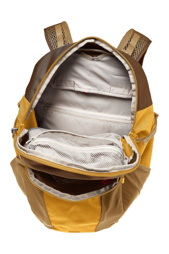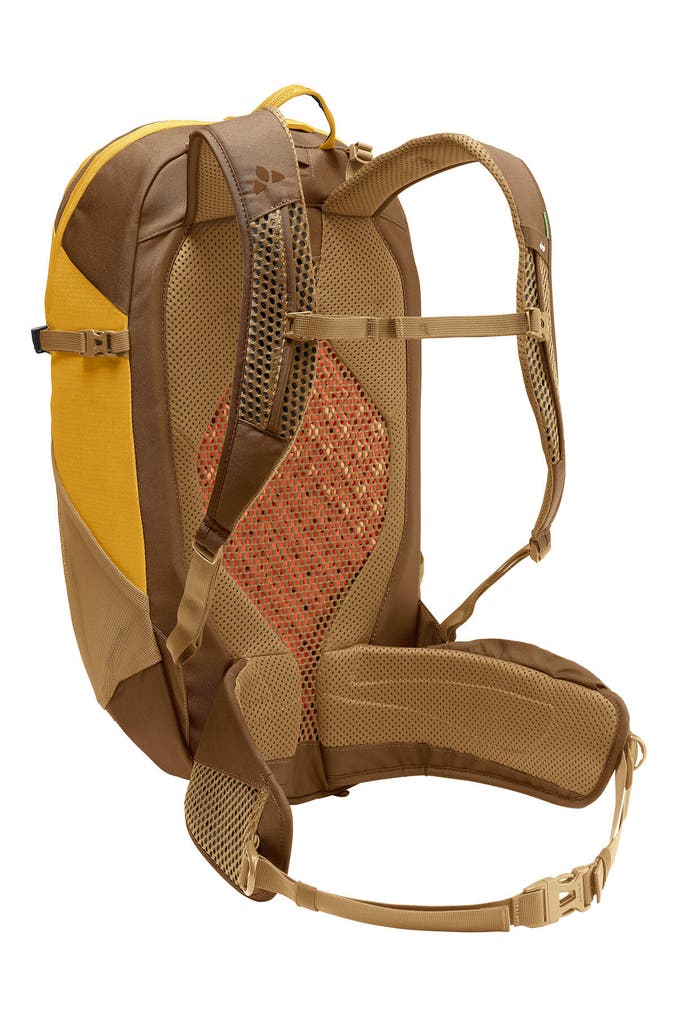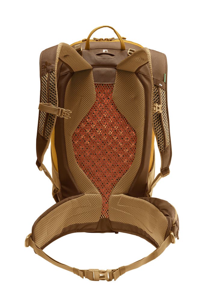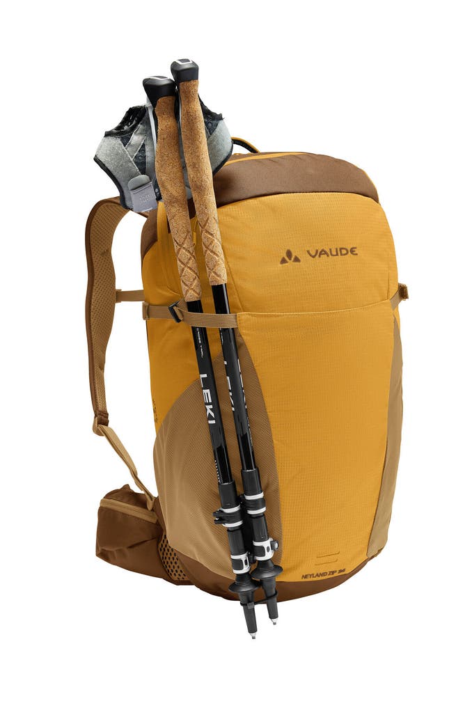 Multifunktionell und modern - das ist der geräumige Rucksack Neyland Zip 26. Dieser Rucksack eignet sich für Berg- und Wandertouren genauso wie für den Alltag in der Stadt. Das Rückensystem mit den strukturierten Schaumstoffmodulen sorgt für eine gute Belüftung und gleichzeitig für einen stabilen Rückenkontakt. Die anatomisch geformten Schulterträger und die Hüftflügel sind weich gepolstert für einen hohen Tragekomfort. Die integrierte EMP Platte (ergonomic movement panel) des Wanderrucksacks unterstützt die natürliche Rückenbeugung beim Aufstieg oder auf dem Fahrrad und verhindert, dass das Gepäck auf den Rücken durchdrückt. Ausgestattet ist dieser 26 Liter Rucksack mit einem geräumigen Hauptfach mit Reißverschluss-Innentasche und einem Trinksystemfach sowie einem gepolsterten Einschubfach für Tablets (bis 12" Zoll). Die Reißverschluss-Fronttasche hat zusätzlich ein gepolstertes Handyfach. In die seitlichen Stretch-Taschen passen Getränk, Mütze und andere Utensilien. Wanderstöcke können an der Stockbefestigung befestigt werden und die seitlichen Kompressionsriemen dienen als weitere Gepäckfixierung. Weiteres Gepäck kann in die offene Stretchtasche auf der Front verstaut werden. Eine Regenhülle ist inklusive. Dieser Rucksack zum Wandern und für den Alltag ist außerdem nachhaltig. Das VAUDE Green Shape-Label steht für ein umweltfreundliches, funktionelles Produkt aus nachhaltigen Materialien.