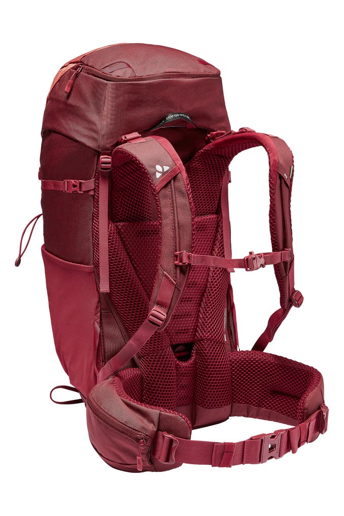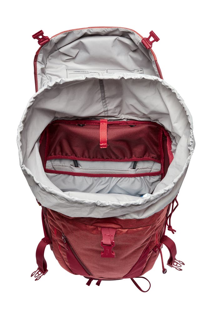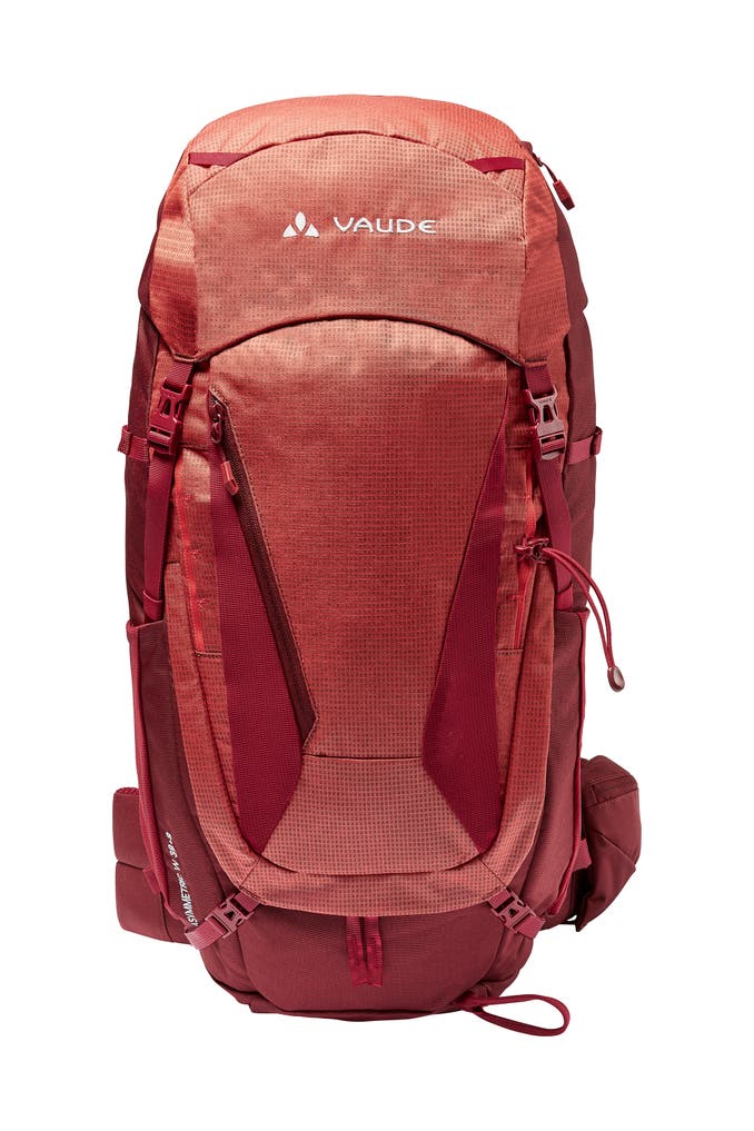 Ein Allrounder fürs Trekking! Egal, ob auf Hüttentour, beim Alpintrekking, Pilgern oder Backpacking: Der Damen-Trekkingrucksack mit 38 Liter Packvolumen vereint Tragekomfort und Stauraum. Dabei ist der Trekkingrucksack für Damen besonders rückenfreundlich: Die Aussparungen im unteren Rücken mindern den Druck auf das Iliosakralgelenk und beugen Rückenbeschwerden vor. Das Tergolight Comfort Space-Tragesystem garantiert optimalen Tragekomfort. Rückenlänge sowie Lastenpositionierung können individuell eingestellt werden. Kürzere Schultergurte, verkürzte Rückenlänge, speziell geformter und weich gepolsterter Hüftgurt: Der Damen-Trekkingrucksack passt sich der weiblichen Anatomie an. Die Ergoshape-Schulterträger entlasten und lassen den Armen Bewegungsfreiheit. Das Hauptfach des Damen-Trekkingrucksacks ist von oben und vorne zugänglich – kein lästiges Kramen. Im gut belüfteten Frontfach kann eine nasse Jacke trocknen und alles Notwendige griffbereit aufbewahrt werden. In den elastischen Seitenfächern sind Trinkflasche und Wanderkarte sicher verstaut und erreichbar, ohne den Damen-Trekkingrucksack abzusetzen. Helm, Eispickel und Trekkingstöcke finden an der Daisy Chain oder der zusätzlichen Materialschlaufe Platz. Pro Seite finden sich zwei Kompressionsriemen am Rucksack sowie ein weiterer unter dem Deckel mit integrierter Ersatzschnalle, falls unterwegs eine der Schnallen zu Bruch gehen sollte. Der höhenverstellbare Deckel mit Innenfach schafft bis zu 8 Liter zusätzliches Volumen. Dieser Trekkingrucksack für Damen besteht überwiegend aus Recyclingmaterialien. Unser VAUDE Green Shape-Label steht für ein funktionelles, umweltfreundliches Produkt aus nachhaltigen sowie bluesign® zertifizierten Materialien Materialien.