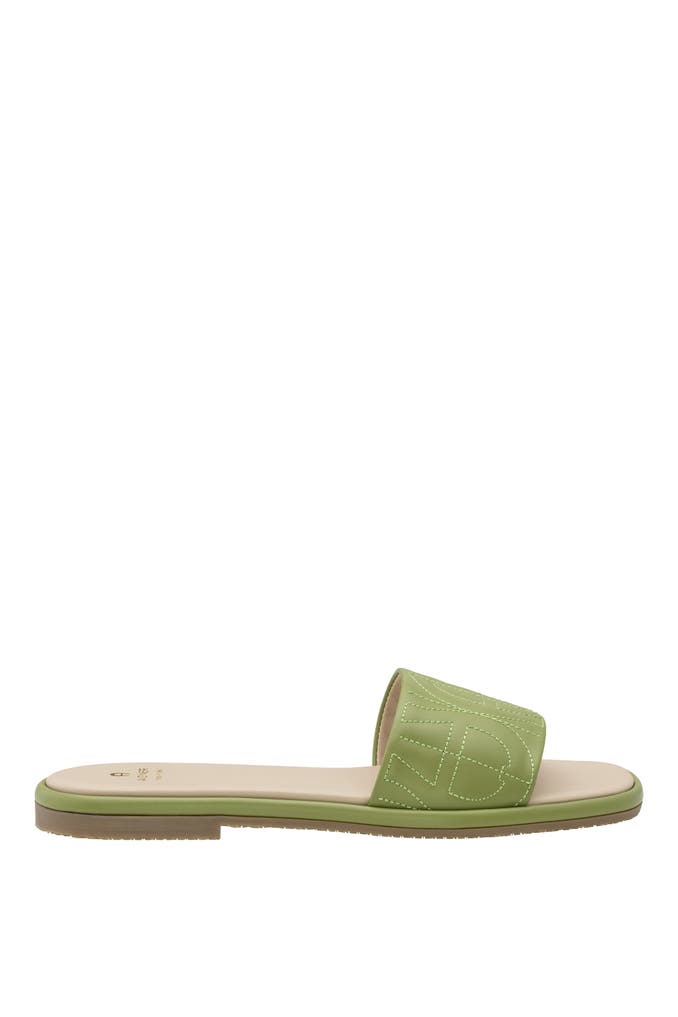 Ready for sunshine: Gefertigt aus feinstem Leder mit charakteristischer A Logo-Steppung, ist AIGNERs Slide-Sandale LOTTA ein wahres Styling-Wunder. Dank der extra gepolsterten Innensohle ist ihr Tragekomfort besonders hoch. Ein Lieblings-Style für die warme Jahreszeit.