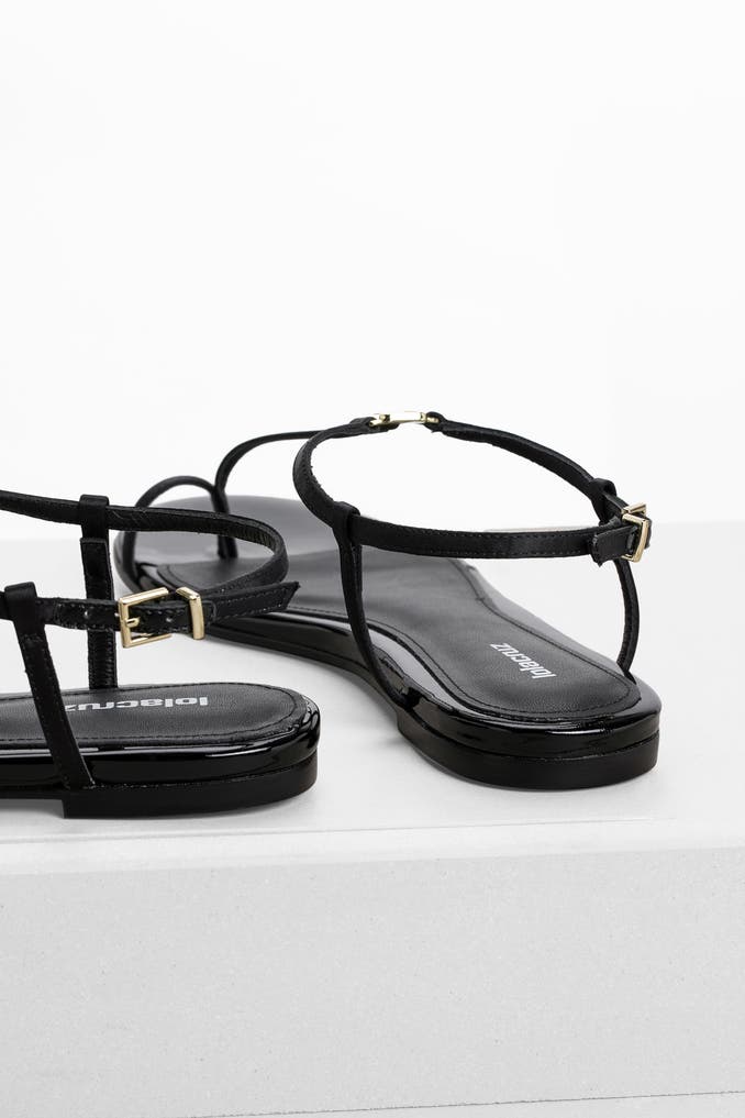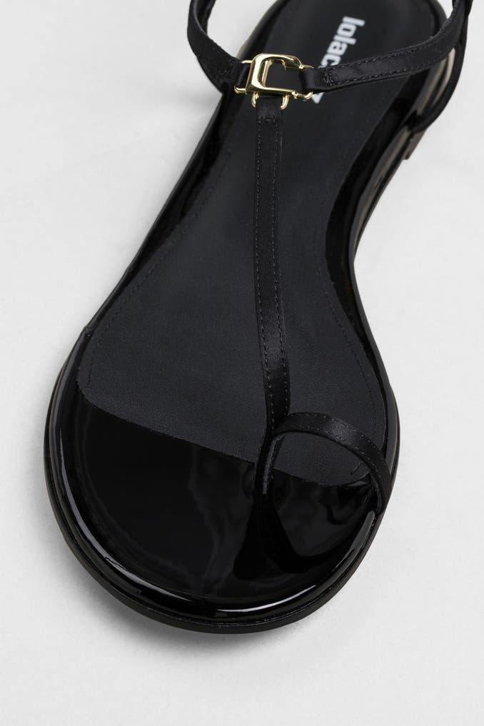 Setzen Sie mit den Lola Cruz Sandalen 'Satin' in Schwarz ein Statement! Die flachen Sandalen mit offener Schuhspitze und Ledersohle ergänzen Ihr Freizeit-Outfit perfekt und sorgen für einen eleganten Look.