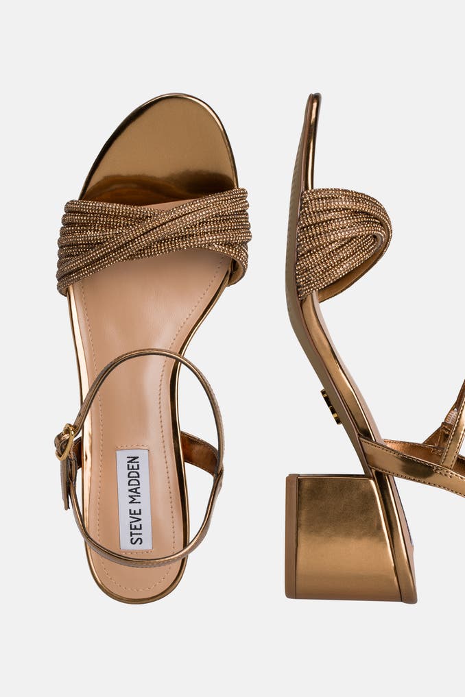 Veredeln Sie Ihren Look mit den Sandaletten 'Ismeria' von STEVE MADDEN. Das bronzefarbene Design verleiht Ihrem Outfit eine elegante Note und der Blockabsatz sorgt für angenehmen Tragekomfort. Gönnen Sie sich diesen modischen Hingucker und ergänzen Sie Ihre Schuhkollektion um ein vielseitig einsetzbares Highlight.