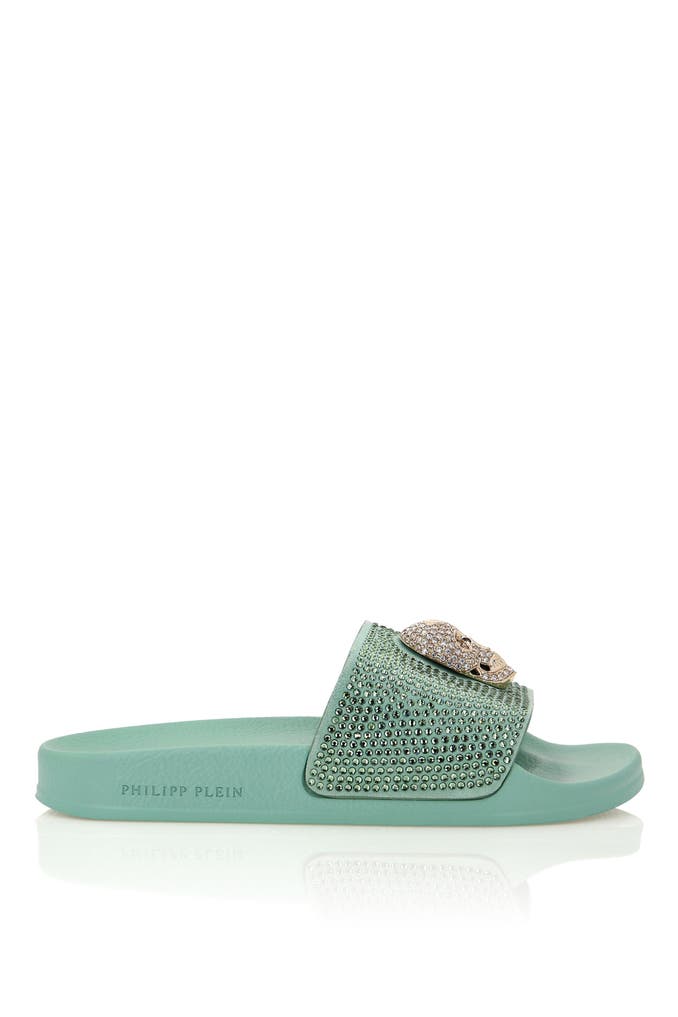Diese Sandalen mit flachem Schädel und Kristallen sind so konzipiert, dass sie alltägliche Looks mit einer selbstbewussten und raffinierten Haltung aufwerten und sich ideal mit Statement-Pieces oder reduzierten Essentials kombinieren lassen. Entworfen als ein raffiniertes Statement Stück innerhalb der Sammlung. Hochwertige Konstruktion für ein erstklassiges Aussehen und Gefühl. Unverwechselbare Designdetails, die das tägliche Styling aufwerten.