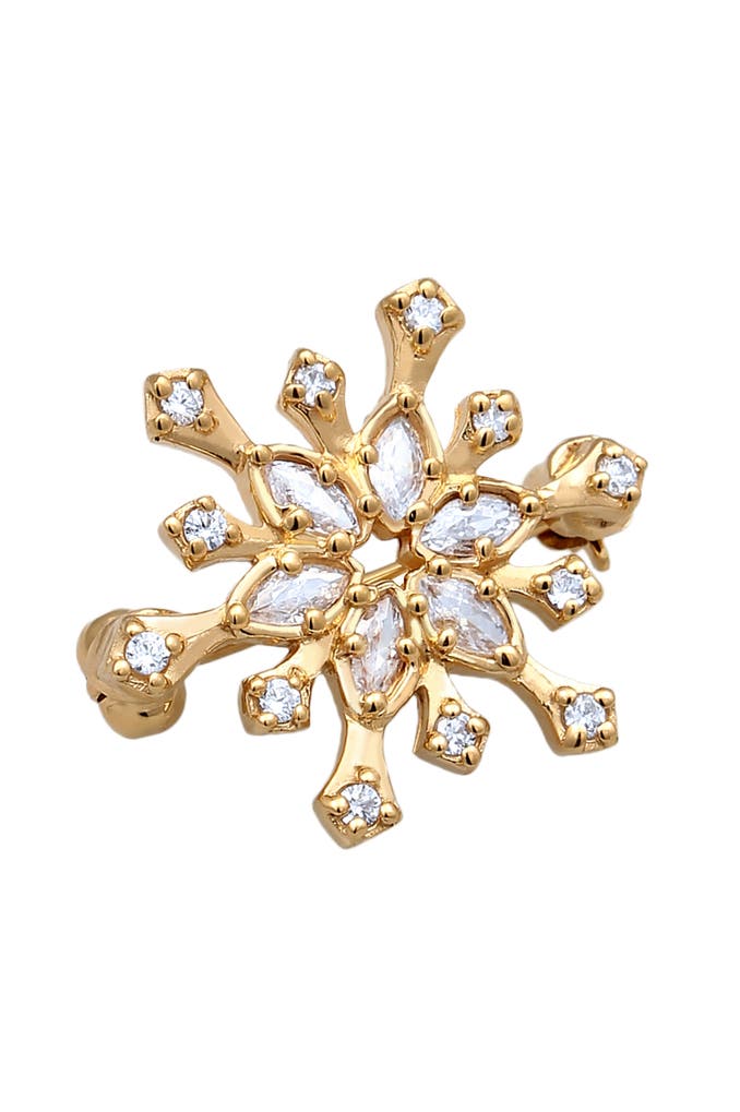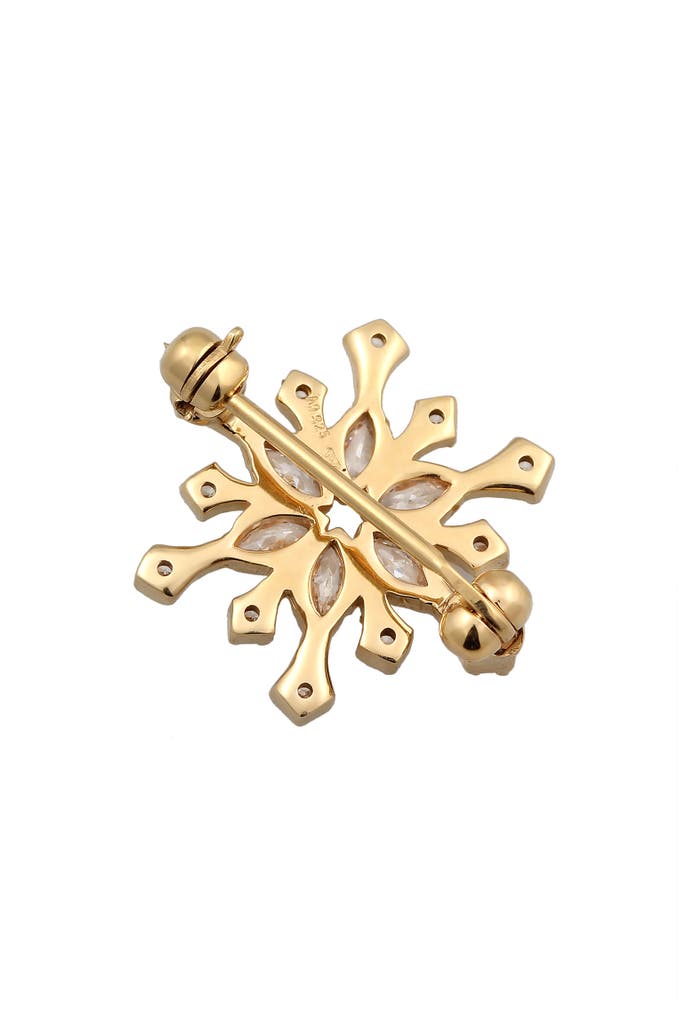 ELLISchmuckset Brosche Schneeflocke Zirkonia Weiß 925 Sterling Silber Gold