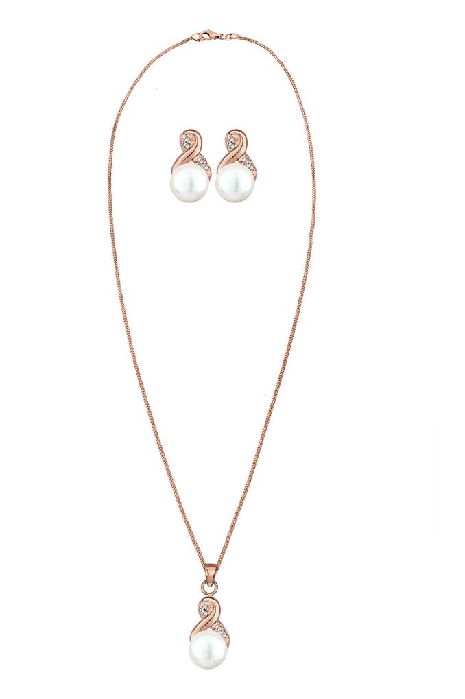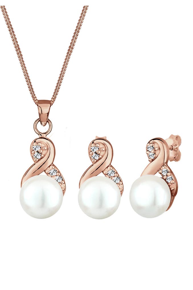 ELLISchmuckset Infinity Perlen Kristalle 925 Silber Rosegold
