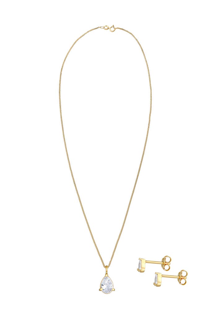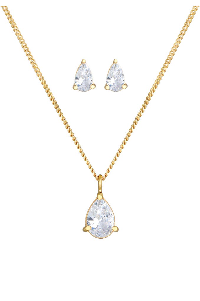 ELLISchmuckset Kette Ohrstecker Tropfen Zirkonia Set 925 Silber Gold