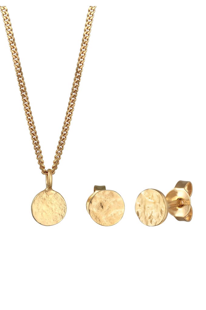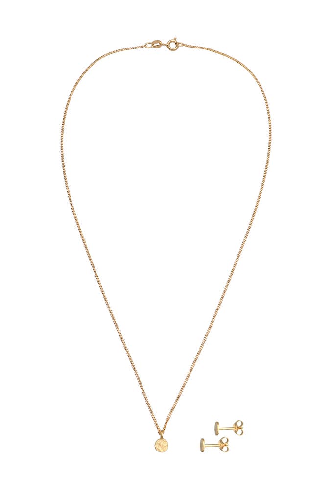 ELLISchmuckset Kette und Ohrringe Plättchen 925 Silber Gold