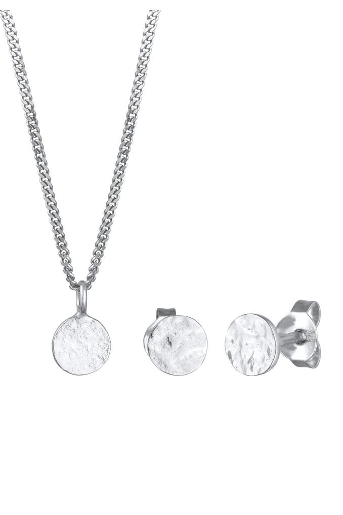 ELLISchmuckset Kette und Ohrringe Plättchen 925 Silber Silber