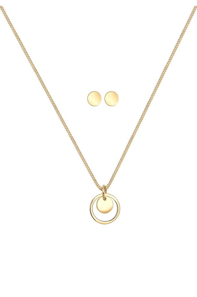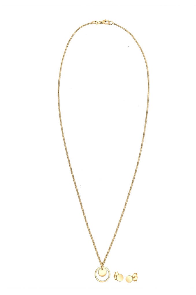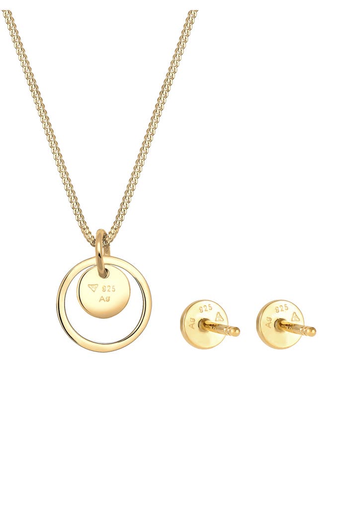 ELLISchmuckset Rund Plättchen Kette Ohrstecker 925 Silber Gold