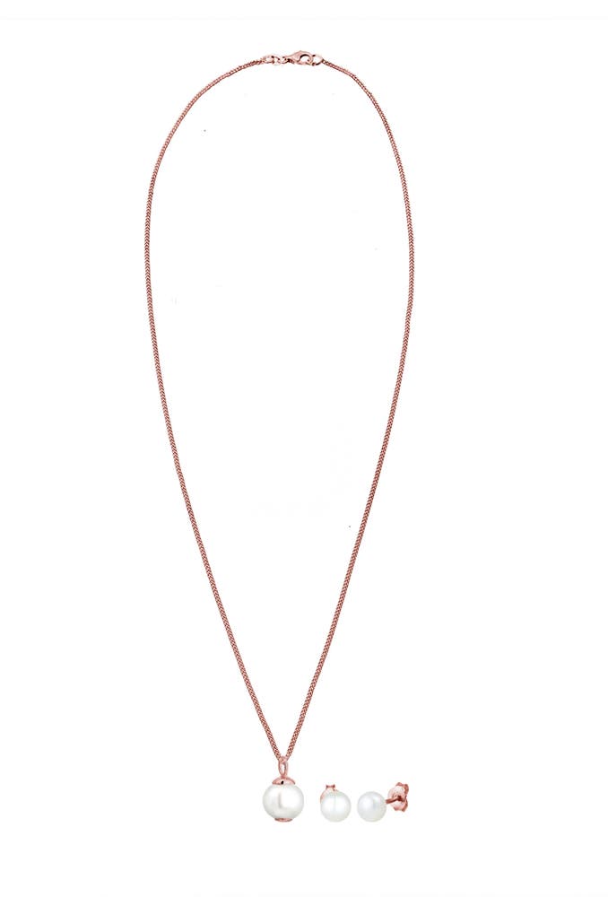 ELLISchmuckset Süßwasserperlen Weiß 925 Sterling Silber Rosegold