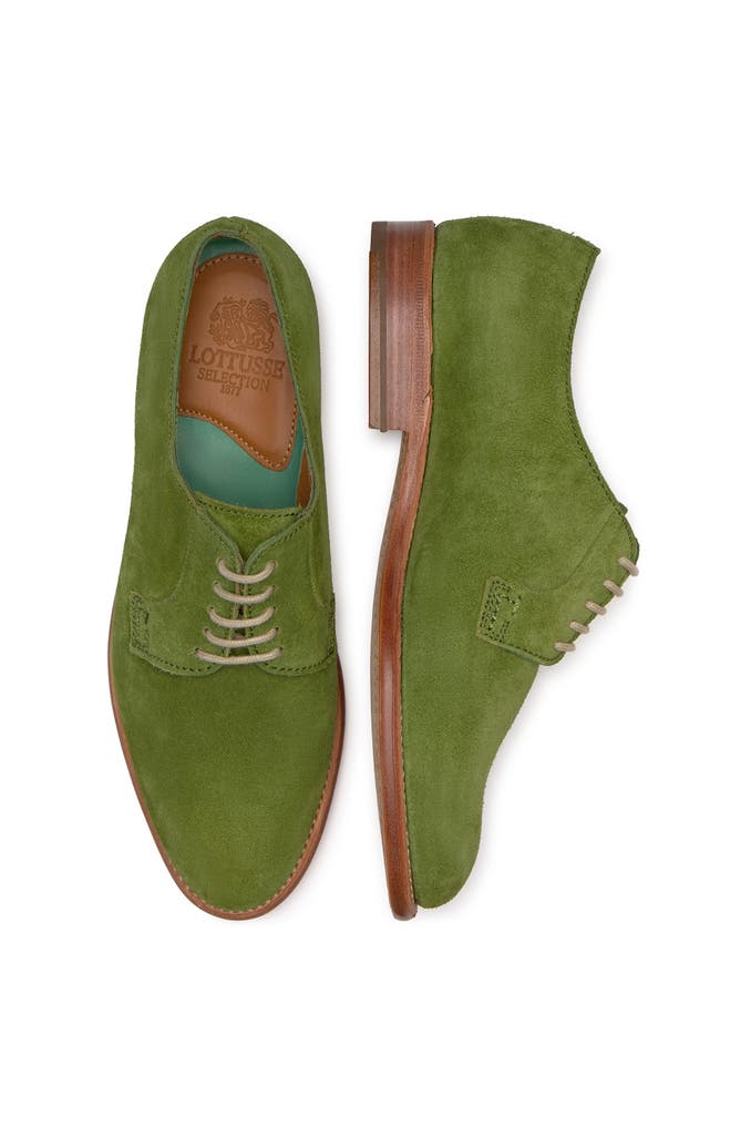 Eine zeitgemäße Neuinterpretation eines Klassikers. Dieser Derby aus grünem Leder verbindet Tradition und Moderne mit einem Hauch von Farbe, der den Unterschied ausmacht. Ideal für alle, die sich ohne Strenge abheben möchten.
