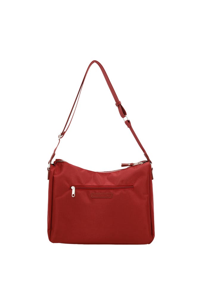 Mit dieser sportlichen Schultertasche aus strapazierfähigem Nylon verbindest Du Stil und Funktionalität auf Reisen oder im Alltag. Die Vortasche ist durch einen Reißverschluss gesichert, während auf der Rückseite ein weiteres Reißverschlussfach zusätzlichen Stauraum bietet. Dank des Handyfachs im Inneren findet jedes aktuelle Smartphone-Modell seinen Platz und der abnehmbare sowie längenverstellbare Schultergurt macht die Tasche passend zu jedem Outfit.