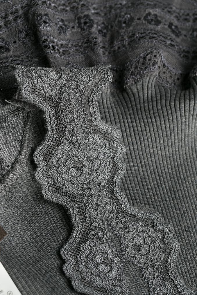 - Spitzeneinfassung an Rundhalsausschnitt, Armausschnitt und Saum
