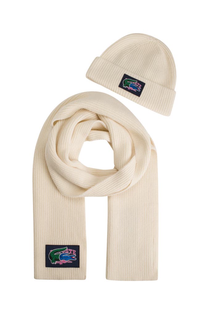 LACOSTESet: Schal und Mütze ecru