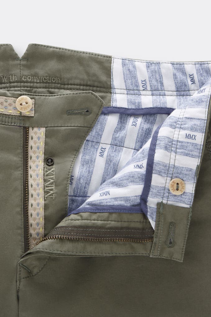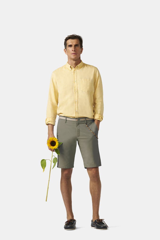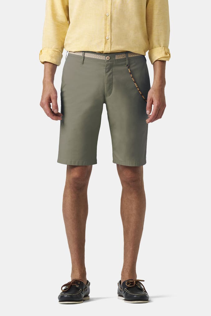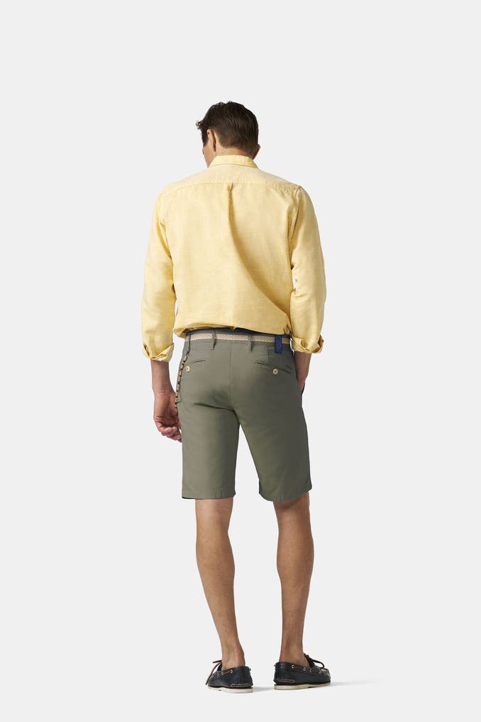 Unsere Bermuda aus feinstem Twill bietet dank der weichen, leichten Textur hohen Tragekomfort. Der Bund ist mit einem buntgewebten Ripsband verziert, was einen modischen Akzent setzt. Die schlanke Passform und die farblich abgestimmten Knöpfe aus exklusiver Steinnuss betonen den edlen Charakter. Die Super-Stretch-Qualität sorgt für uneingeschränkte Bewegungsfreiheit.