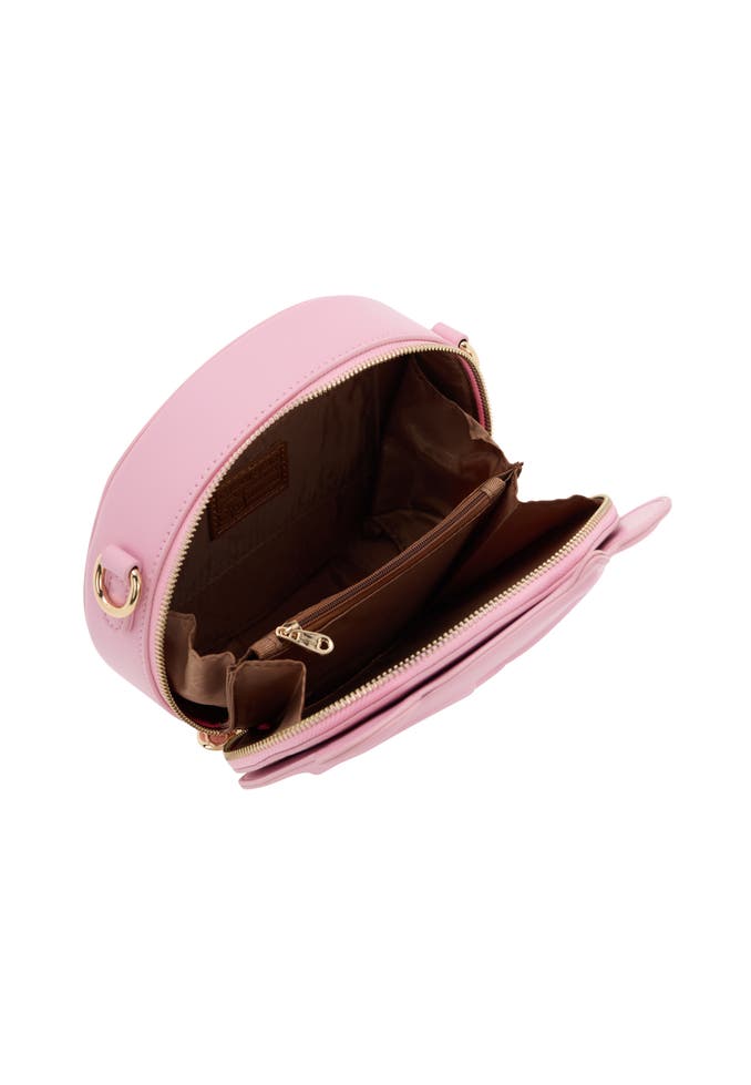 This small rounded shoulder bag adds a playful touch to any outfit, featuring an adorable teddy bear motif and a fun playful pattern. Made from eco leather, it comes with an adjustable and detachable strap for versatile wear. The bag includes two compartments and a zippered inner pocket to keep your essentials organized and secure. Part of the Kids Collection, this trendy, cute bag is perfect for young fashion lovers. This product is a part of the Cream Bear Collection.
