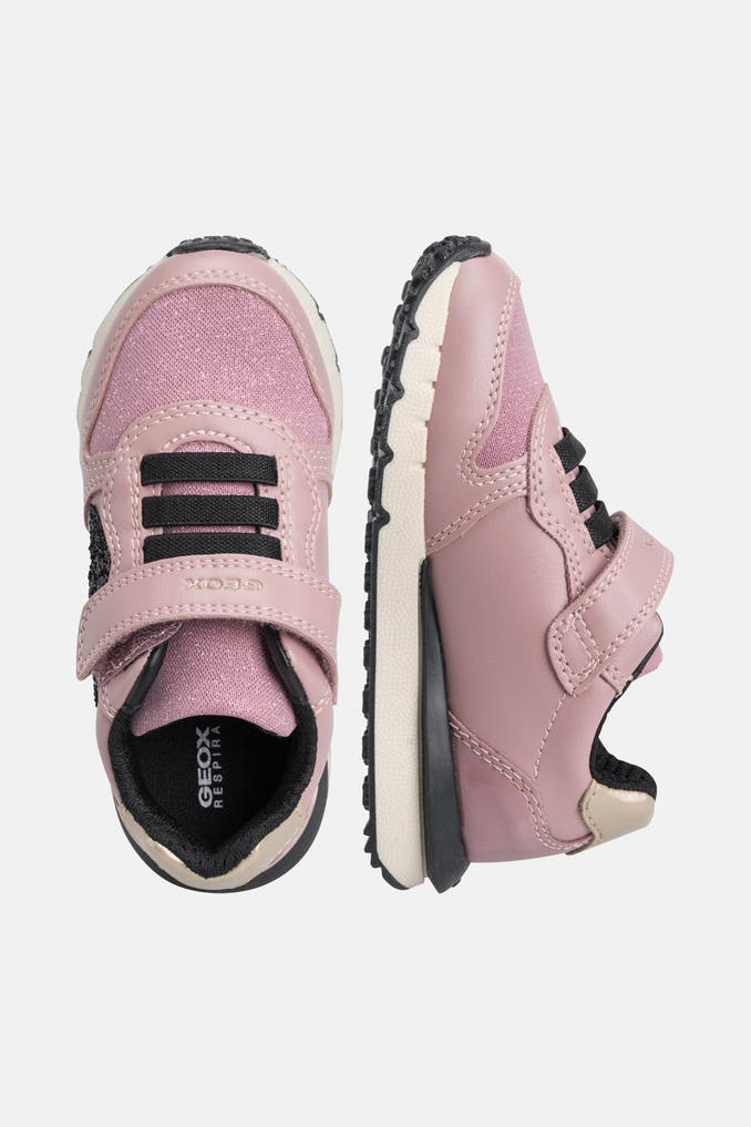 • robustes Lederimitat mit textilen Einsätzen und glitzernden Details