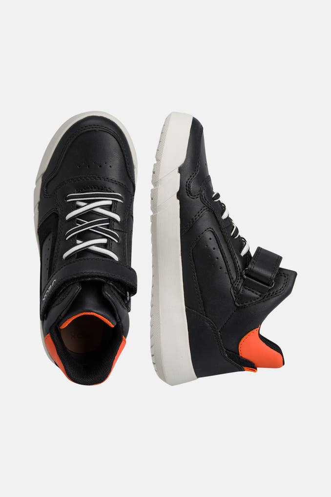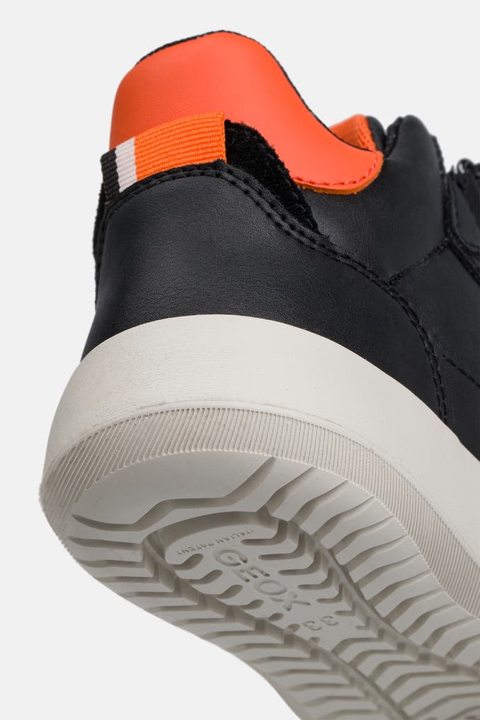 • robustes Obermaterial aus Lederimitat mit textilen Einsätzen