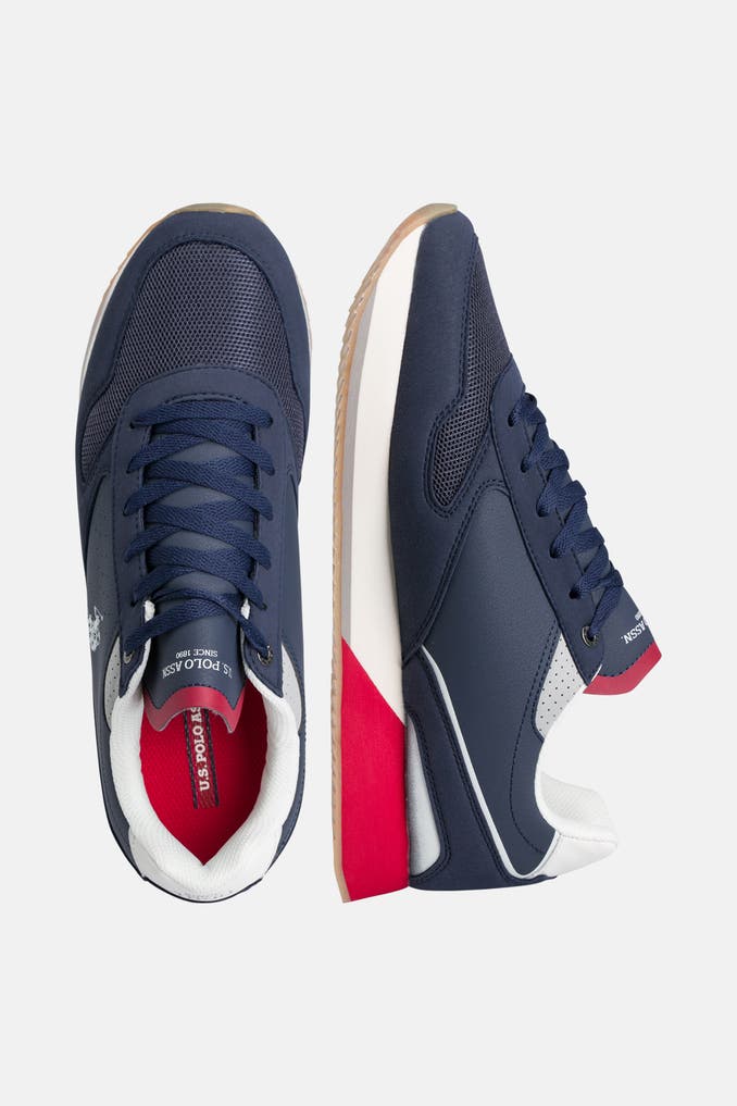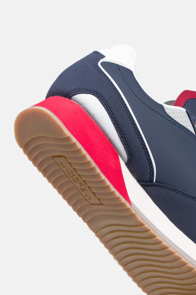 hochwertiges Obermaterial aus Lederimitat mit textilen Einsätzen