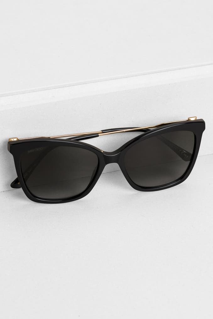 Erleben Sie pure Eleganz mit der zweifarbigen Sonnenbrille 'Maci/S' von JIMMY CHOO. Das eckige Design verleiht Ihnen eine moderne und stilvolle Ausstrahlung, während die schwarz-goldfarbene Kombination ein luxuriöses Statement setzt. Ein wahres Must-Have, das jedes Outfit elegant aufwertet!