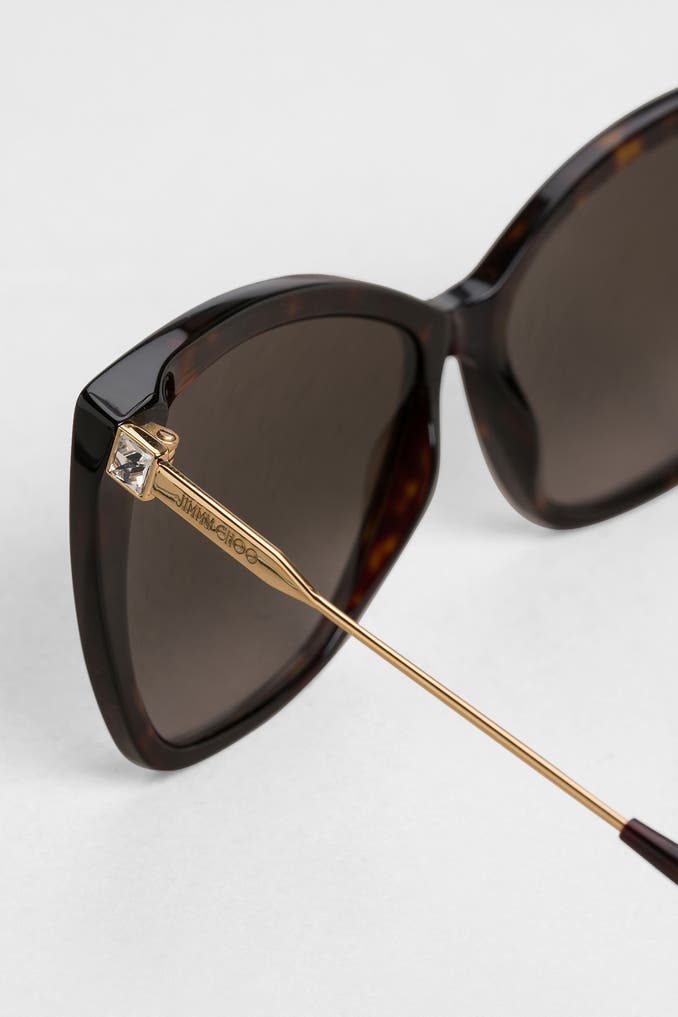 Tauchen Sie ein in die Welt des Glamours mit der Sonnenbrille 'Seba/S' in chicer Farbgebung von JIMMY CHOO. Das eckige Design verleiht Ihnen einen modernen und stylischen Look, während die hochwertige Verarbeitung für einen idealen Tragekomfort sorgt. Sichern Sie sich diesen luxuriösen Begleiter für sonnige Tage und setzen Sie ein Fashion-Statement!