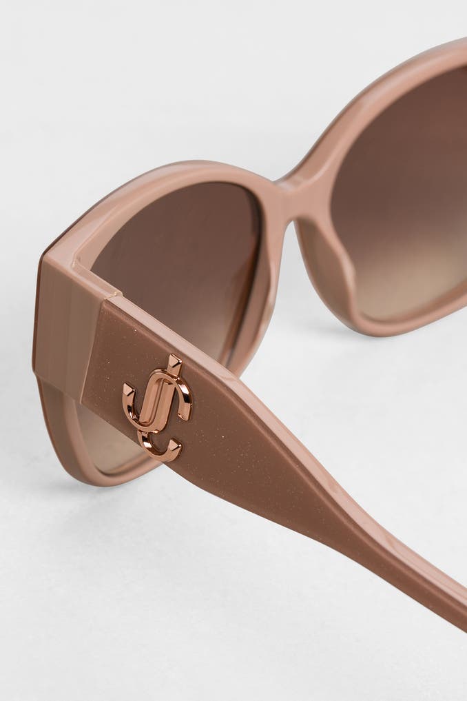 Tauchen Sie ein in die Welt des Luxus mit der Sonnenbrille 'Shay/S' von JIMMY CHOO. Dieses Accessoire aus Kunststoff bietet nicht nur einen eleganten Look, sondern überzeugt auch mit seiner glitzernden Optik. Setzen Sie ein Statement und sichern Sie sich diese stilvolle Sonnenbrille für Ihren nächsten Auftritt!