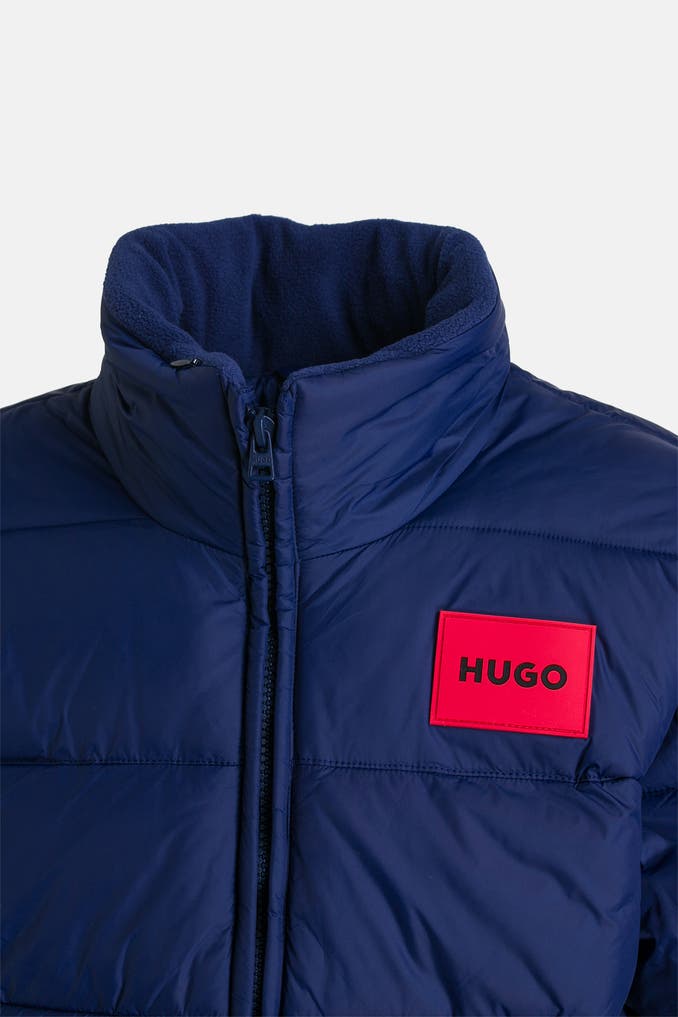 Genießen Sie die Vielseitigkeit und den Komfort der blauen Steppjacke von Hugo. Der Stehkragen verleiht dem Modell eine moderne Note, während das wasserabweisende Material an regnerischen Tagen schützt. Auch in puncto Wärme ist Ihr Junge bei diesem Modell bestens gerüstet, wenn die Temperaturen sinken.