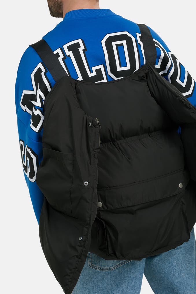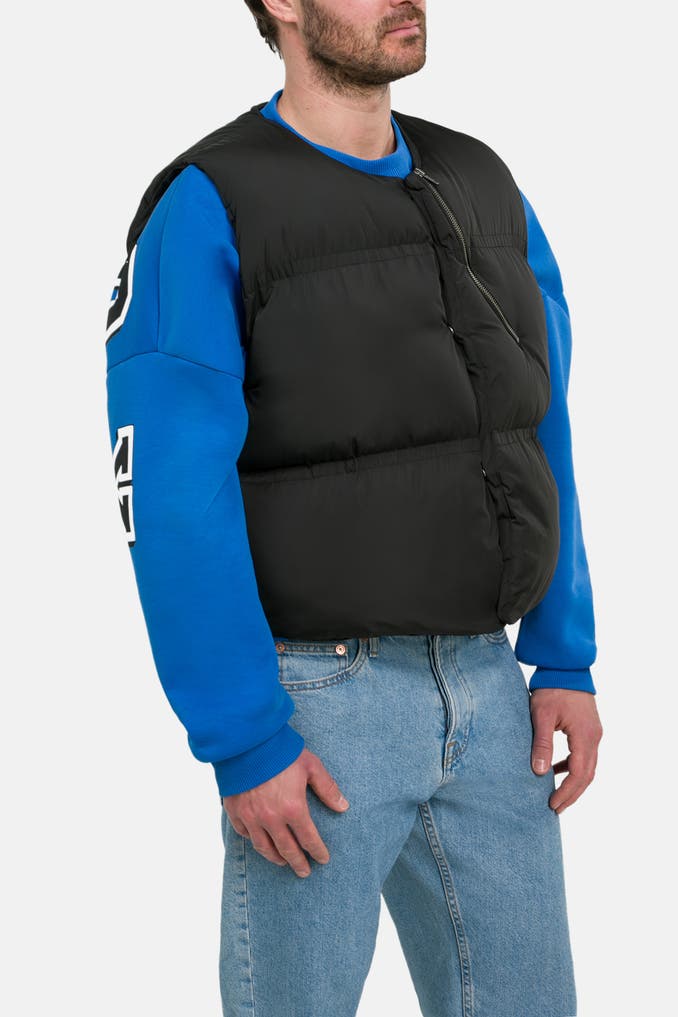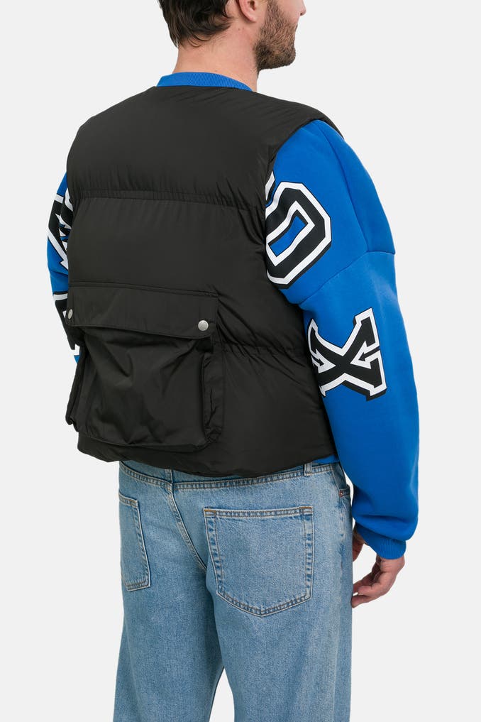 Diese Steppweste von Atelier de Roupa in Schwarz mit Collegekragen ist perfekt für entspannte Freizeitoutfits. Dank der gefütterten und geraden Passform sowie den praktischen Taschen, darunter eine innenliegende und eine verdeckte Tasche, ist sie nicht nur stylisch, sondern auch funktional.