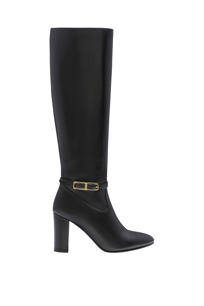 Eleganz auf hohem Niveau: Boot CAROLINE aus weichem Kalbsleder bringt feminine AIGNER-Raffinesse in die Garderobe. Der hohe Schaft schmiegt sich elegant an, während der schmale High Heel die Silhouette stilvoll verlängert. Goldfarbene Details setzen glamouröse Akzente – ein Statement-Piece, handmade in Italy, für anspruchsvolle Looks.