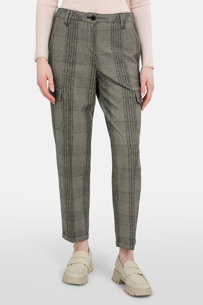 Setzen Sie ein modisches Statement mit der gemusterten Stoffhose von Marc Cain. Die karierten Details verleihen der Hose einen eleganten Touch, während die schlanke Passform und die 7/8 Länge eine moderne Silhouette zaubern.