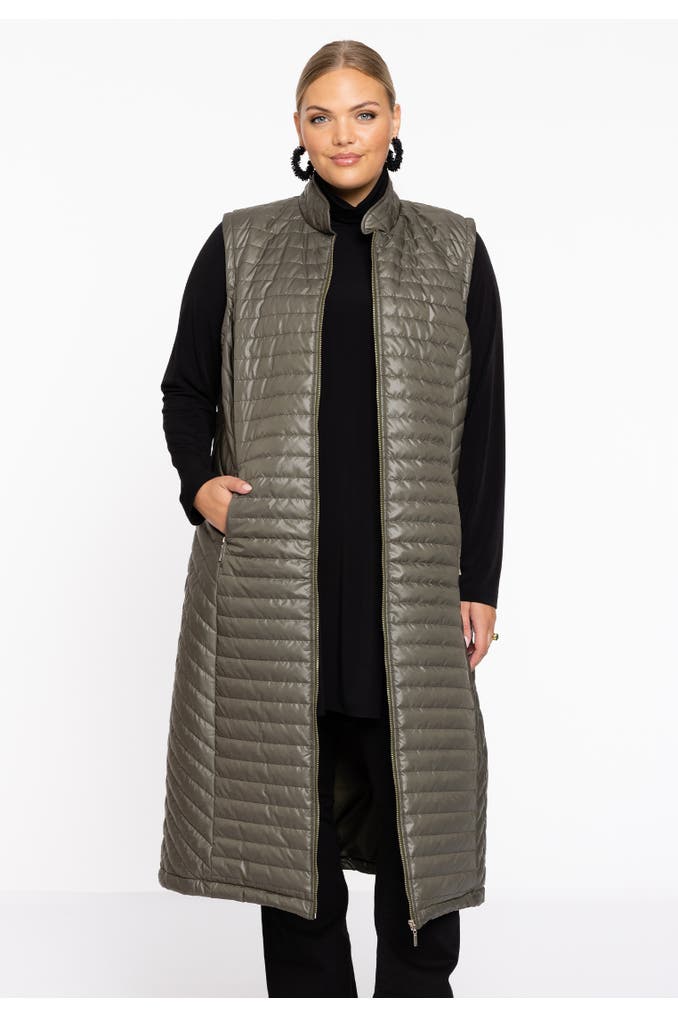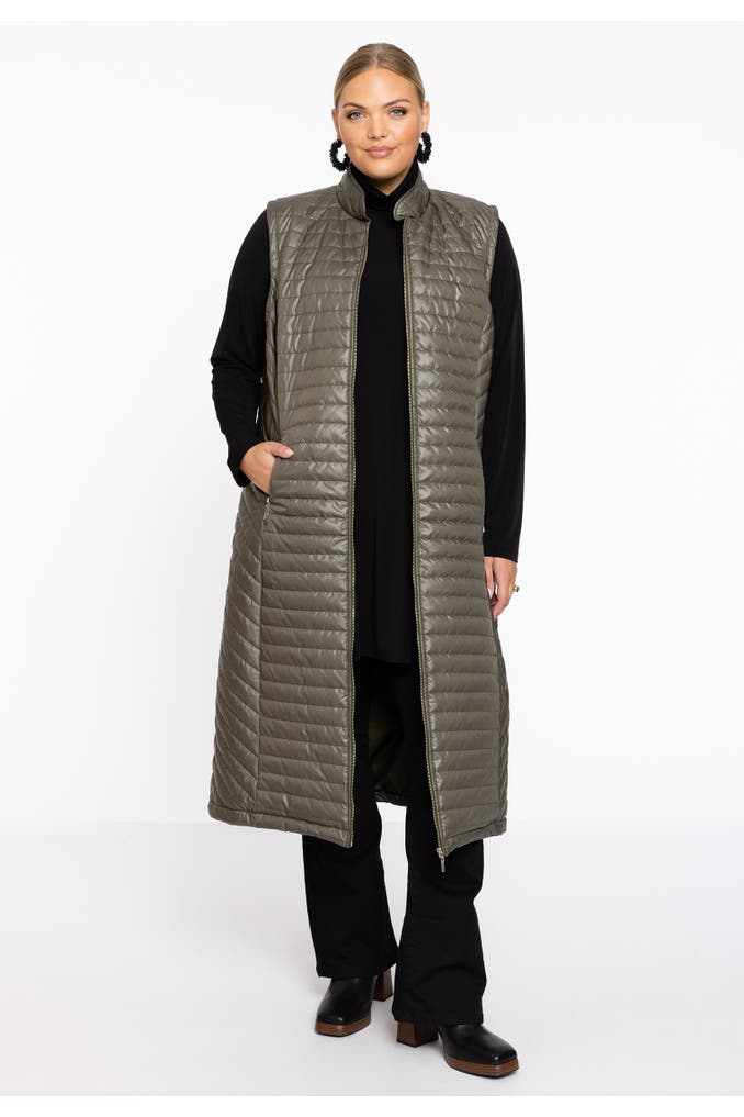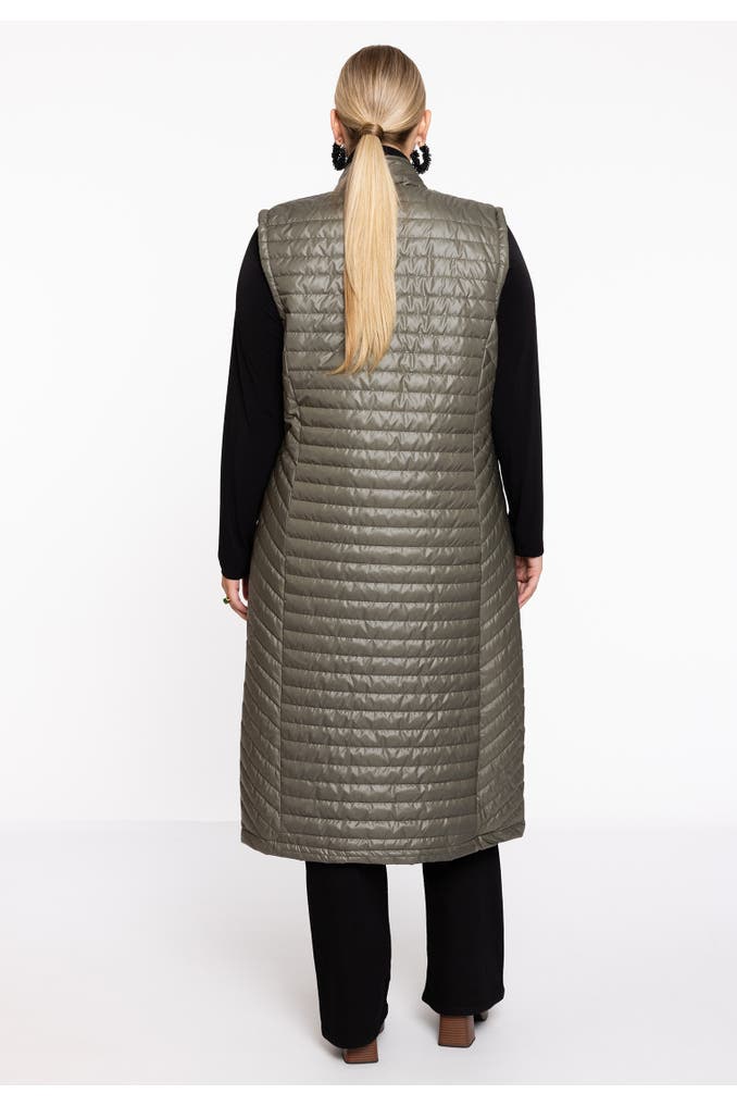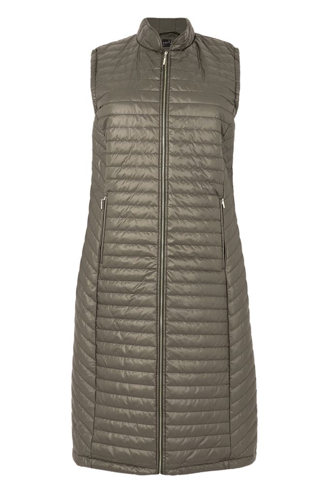 Diese lange Weste eignet sich perfekt für den Lagenlook über grobem Strick oder Kleidern. Es hat einen aufrechten Kragen, Reißverschluss vorne und Vordertaschen . Die gerade Passform und der nicht auftragende Stoff sorgen für einen eleganten und stromlinienförmigen Look.